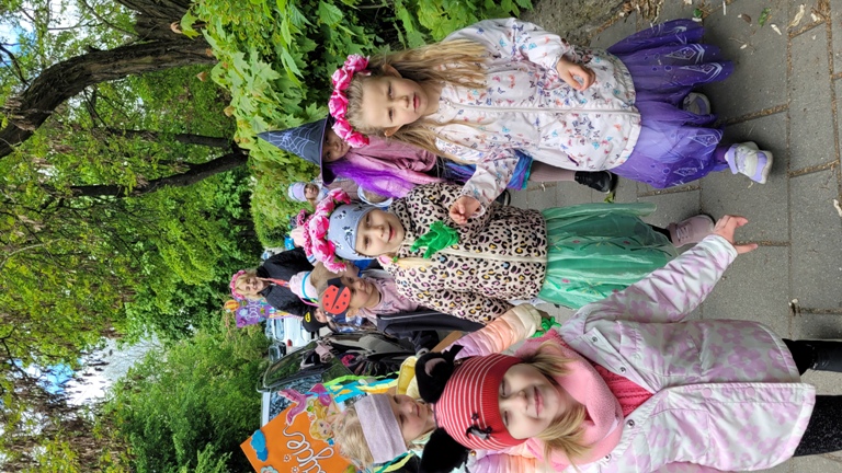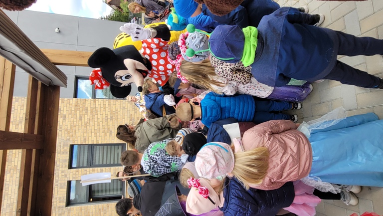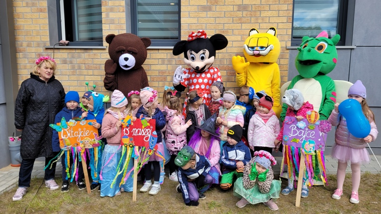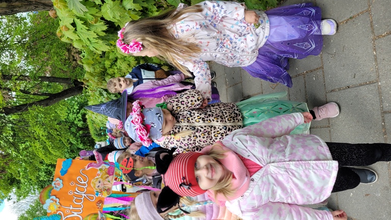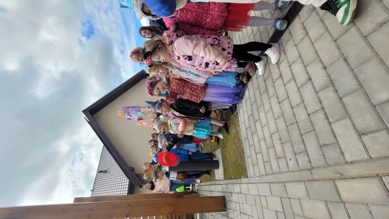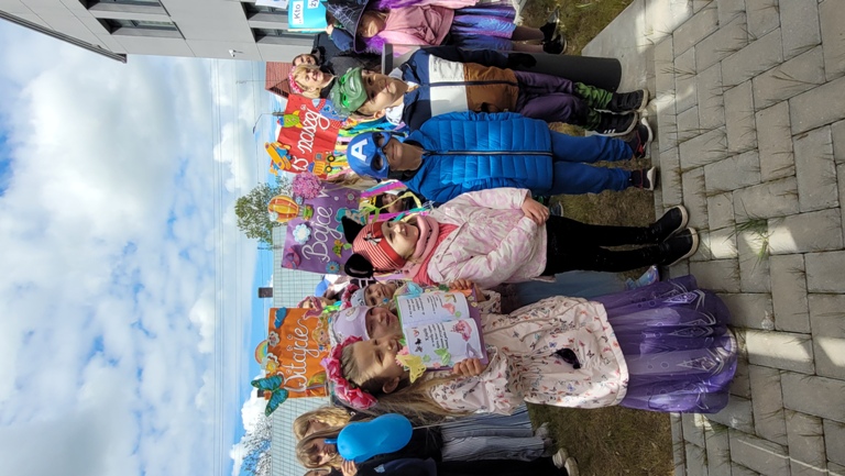 Maczki- "Bibiloteka - lubię tu być!"- korowód postaci z bajek