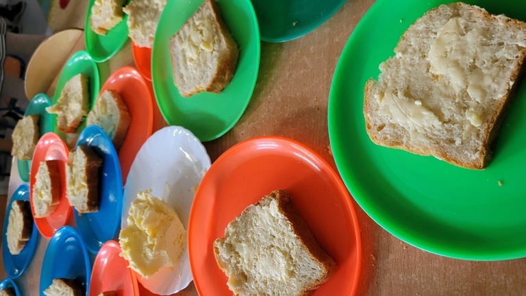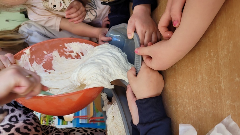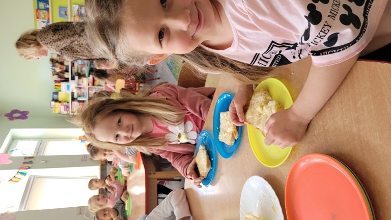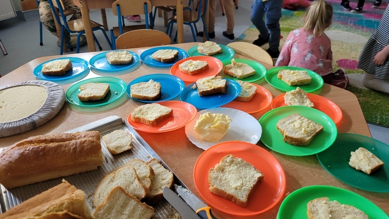 Maczki- Zajęcia kulinarne "Co nam daje wieś?" - własnoręcznie robione masło i chleb