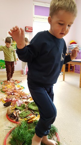 Różyczki - "W parku i w lesie" - ścieżka sensoryczna, poznajemy mieszkańców
