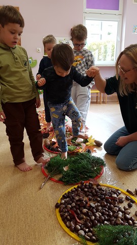 Różyczki - "W parku i w lesie" - ścieżka sensoryczna, poznajemy mieszkańców