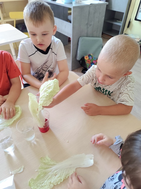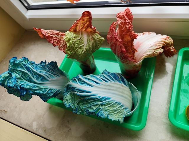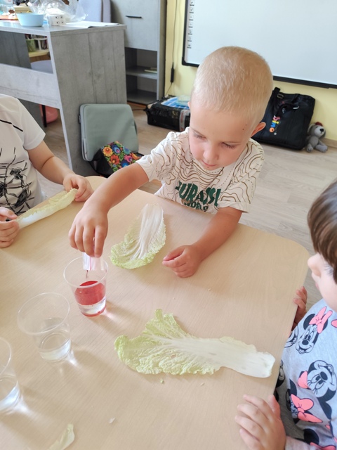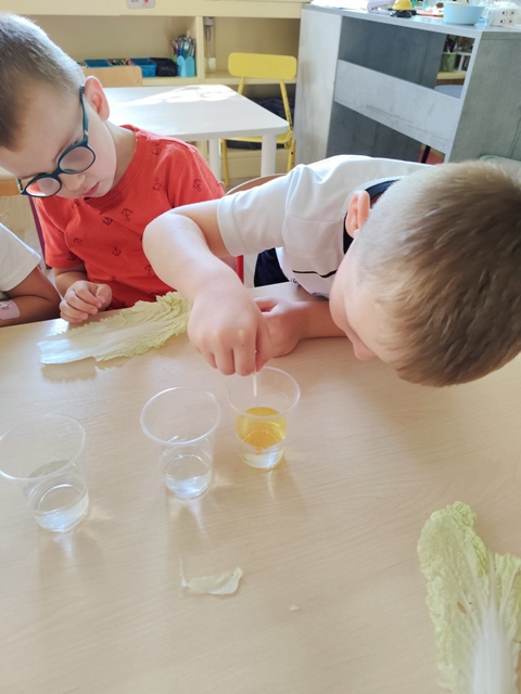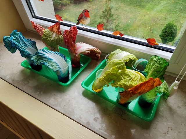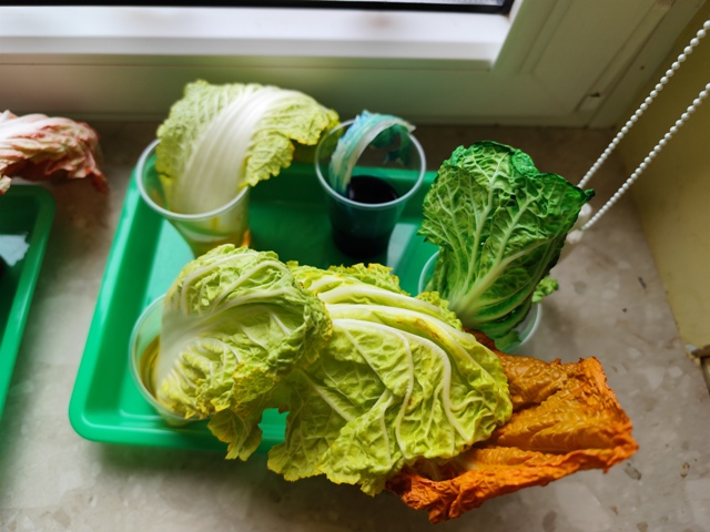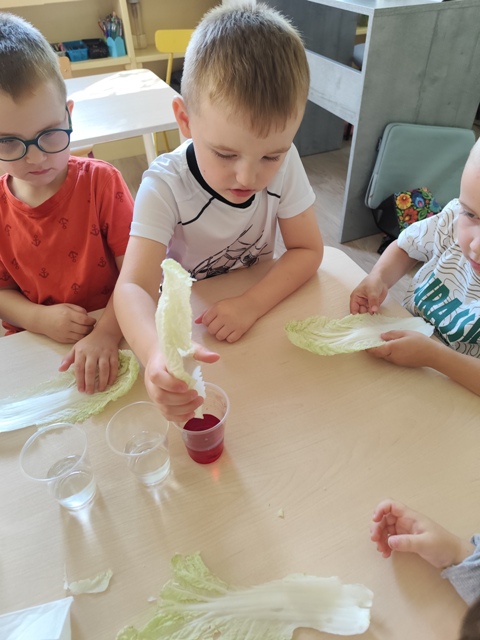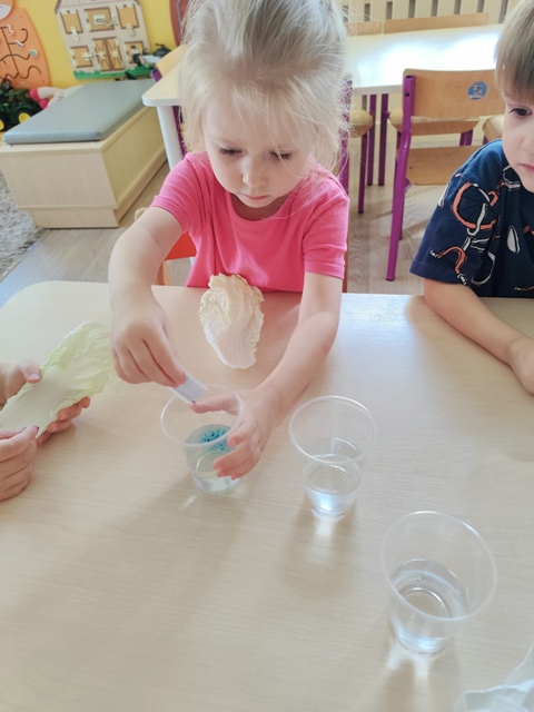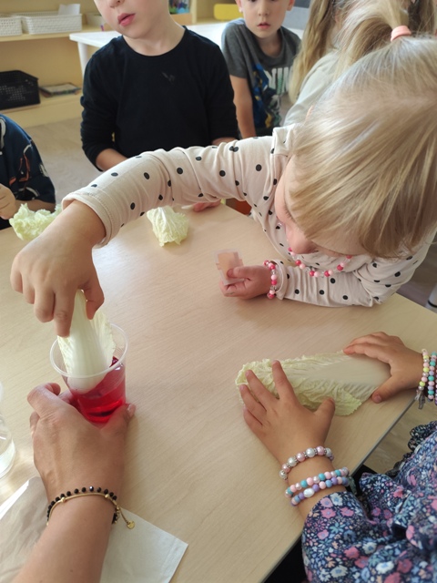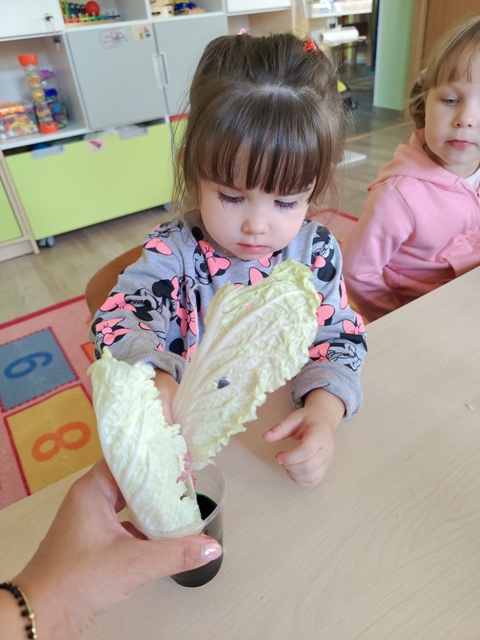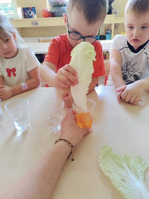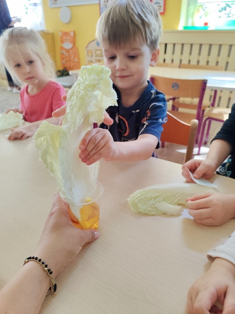 Eksperymenty - barwienie liści kapusty